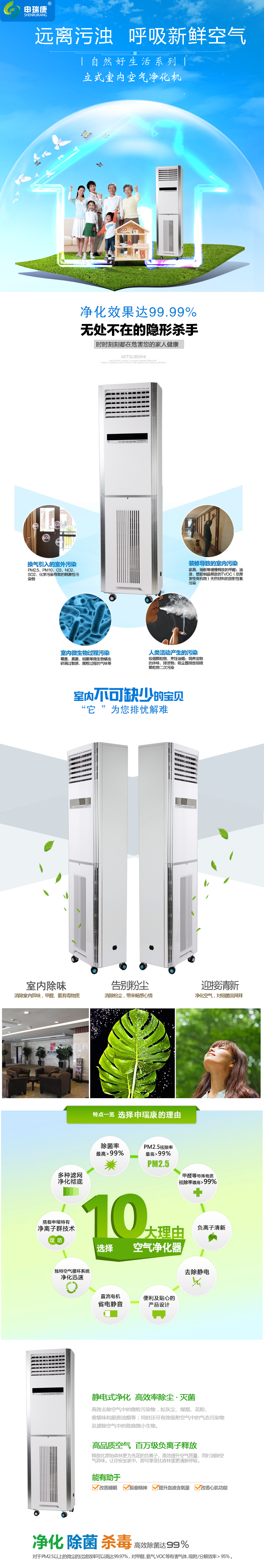 申瑞康落地式空氣凈化器由進(jìn)風(fēng)口、預(yù)過濾系統(tǒng)、高效過濾系統(tǒng)、風(fēng)機(jī)、二段式高壓靜電場、浸漬型活性炭網(wǎng)、負(fù)離子發(fā)生器等部件組成。預(yù)過濾系統(tǒng),首先對空氣中較粗的飄塵粉塵截流過濾,一般5-6微米左右的飄塵粉塵可通過預(yù)過濾系統(tǒng)完成。設(shè)立的二段式高壓靜電場,它具有最佳集塵效果和最大的集塵面積。當(dāng)污濁的空氣進(jìn)入電場極區(qū)時,靜電場立即對空氣中飄塵粉塵、細(xì)菌、氣溶膠等雜質(zhì)進(jìn)行極化,使其帶上電荷,帶電的污染物進(jìn)入高壓電場時被強(qiáng)烈的收集,被極化后的污染物被集塵區(qū)的極片有效吸集。最后還設(shè)置了浸漬性活性炭,用以吸附污濁氣體分子。 (1)電子集塵室除塵、滅菌凈化: