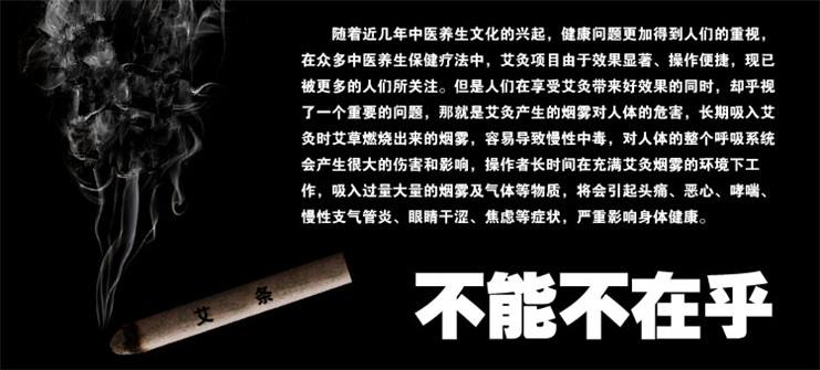 近年來百姓對中醫(yī)養(yǎng)生文化越漸熱崇,艾灸療法也是其中必不可少的一種養(yǎng)生方法,[艾灸煙霧凈化器]主要還是其操作便捷,效果明顯。但人民在享受艾灸帶來好的效果的同事,卻忽略了一個重要的問題,那就是艾灸所產(chǎn)生的煙霧對人體的煩擾。那么,艾灸煙霧對人主要由那些危害呢?![]() 艾灸煙霧中所含化學(xué)物質(zhì)。 艾灸主要是通過燃燒的艾條和針灸相結(jié)合的方法達(dá)到對身體的理療作用。艾條燃耗后產(chǎn)生的煙霧中有大量的脂肪烴,芳香烴等,長期吸入容易導(dǎo)致慢性中毒,對于艾灸行業(yè)工作人員的身體健康存在著極大的危害。 長期吸入艾灸煙霧的癥狀表現(xiàn)。 長期吸入艾灸艾條釋放的煙霧會偶爾或者經(jīng)常出現(xiàn)頭暈、眼干、干咳、喉嚨痛、視力模糊、皮膚干燥等問題,一旦出現(xiàn)上述問題,[艾灸煙霧凈化機(jī)]請及時就醫(yī),或者對艾灸煙霧進(jìn)行必要的處理。 對于商家來說艾灸煙霧不能有效處理,也會導(dǎo)致客戶情緒不滿,如此長期下去業(yè)務(wù)將會逐漸減少,隨之而來的營業(yè)額和利潤也會逐漸減少,對商家來說是岌岌可危的。 對于這類煙霧的處理申瑞艾灸煙霧凈化器能幫助您實(shí)現(xiàn)! 改設(shè)備專門為艾灸條燃燒等所產(chǎn)生廢氣的凈化而設(shè)計的。能實(shí)現(xiàn)室內(nèi)空氣循環(huán)凈化,煙塵凈化機(jī)采用進(jìn)口高風(fēng)壓、低噪音風(fēng)機(jī),能有效的吸取煙塵廢氣。設(shè)備的過濾系統(tǒng)由預(yù)過濾層、主過濾層和氣體過濾層三部分組成,預(yù)過濾層能夠吸附廢氣中比較大的粒子來避免主過濾層過早的被堵塞;主過濾層由HEPA高效過濾芯組成,HEPA高效過濾芯對0.3微米的微粒的過濾效率為99.99%,氣體過濾層由化學(xué)濾芯組成,能有效的去除煙塵廢氣中的有害氣體。
