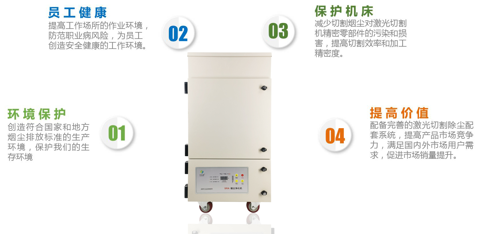 近年來,激光技術(shù)在金屬板材切割領(lǐng)域得到廣泛應(yīng)用,國產(chǎn)數(shù)控激光切割機產(chǎn)業(yè)發(fā)展迅速 。激光切割是利用高密度能量的激光照射使材料受熱熔化(蒸發(fā))而切割的方法。激光切割機在切割工件時,輔助氣體與激光束同軸噴射,切割過程產(chǎn)生大量煙塵。 金屬材料激光切割時,釋放出煙塵顆粒大小可分為塵埃(顆粒大小超過1μm)、氣溶膠(顆粒小于1μm,氣溶膠是一種含有細微分布的固體或液體氣體)及氣體,其中97%的顆粒直徑小于5.7μm。這些煙塵是顆粒極細小的混合物塵;驓馊苣z,一般只有幾微米,會刺激人的眼睛及呼吸系統(tǒng),引發(fā)咳嗽、眼睛刺激等生理性的刺激反應(yīng)。通常認為空氣動力學(xué)粒徑小于7μm的顆粒物是可以進入肺部深層并永久住留肺部,從而可能引發(fā)塵肺等慢性肺部疾病。 如果激光切割設(shè)備沒有除塵裝置或除塵效果不好,切割煙塵不僅污染精密部件切割頭,影響其壽命和穩(wěn)定性,而且嚴重污染工作環(huán)境,危害工作人員的身體健康。因此激光切割除塵治理顯得尤為重要,那么激光切割除塵治理的意義有哪些呢? 1、環(huán)境保護 創(chuàng)造符合國家和地方煙塵排放標準的生產(chǎn)環(huán)境,保護我們的生存環(huán)境 2、員工健康 提高工作場所的作業(yè)環(huán)境,防范職業(yè)病風(fēng)險,為員工創(chuàng)造安全健康的工作環(huán)境。 3、保護機床 減少切割煙塵對激光切割機精密零部件的污染和損害,提高切割效率和加工精密度。 4、提升價值 配備完善的激光切割除塵配套系統(tǒng),提高產(chǎn)品市場競爭力,滿足國內(nèi)外市場用戶需求,促進市場銷量提升。