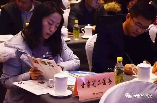 與會(huì)代表閱讀由安徽省經(jīng)信委編輯的《兩化融合在行動(dòng)》一書(shū)(安徽經(jīng)濟(jì)報(bào)社出版)
