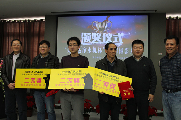 “榮事達(dá)凈水機(jī)杯”攝影大賽由工商導(dǎo)報(bào)社主辦,合肥榮事達(dá)水工業(yè)設(shè)備有限公司冠名。參賽作品要求能夠全面展示安徽經(jīng)濟(jì)社會(huì)發(fā)展、特別是民營(yíng)經(jīng)濟(jì)和民營(yíng)企業(yè)發(fā)展的可喜成果,能夠充分展示當(dāng)?shù)匕l(fā)展風(fēng)貌的各類節(jié)慶活動(dòng)以及記錄各級(jí)工商聯(lián)或商會(huì)組織的重大活動(dòng)。五月份大賽活動(dòng)啟動(dòng)以來,組委會(huì)共收到參賽作品近二百幅,經(jīng)嚴(yán)格評(píng)選,最后頒發(fā)一等獎(jiǎng)2名、二等獎(jiǎng)3名、三等獎(jiǎng)5名,優(yōu)秀獎(jiǎng)10名,黃山廣播電視臺(tái)施廣德、工商導(dǎo)報(bào)記者李誠(chéng)、安徽日?qǐng)?bào)攝影師姚林等獲獎(jiǎng)。李俊波、王六一、雷鳴等為獲獎(jiǎng)代表頌發(fā)了獲獎(jiǎng)榮譽(yù)證書和工商導(dǎo)報(bào)社簽約攝影師聘書,聘書有效期一年。