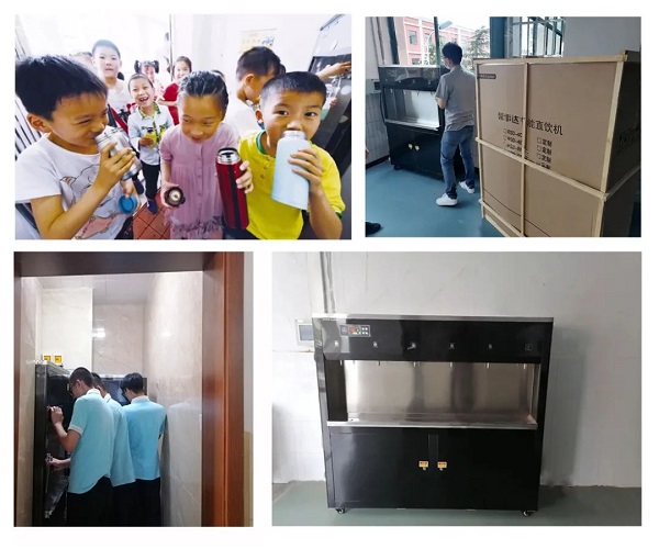 榮事達水工業(yè)為了滿足丹陽市新區(qū)實驗小學(xué)、丹陽市馬相伯中學(xué)對于水質(zhì)好、安全性高、飲水便捷、成本低等各方面要求,特為此量身定制了“中央凈化系統(tǒng)+即熱型飲水機”組合方案,通過中央主機進行集中水質(zhì)凈化,再輸送教學(xué)樓、宿舍樓、食堂等終端供師生安全飲用。